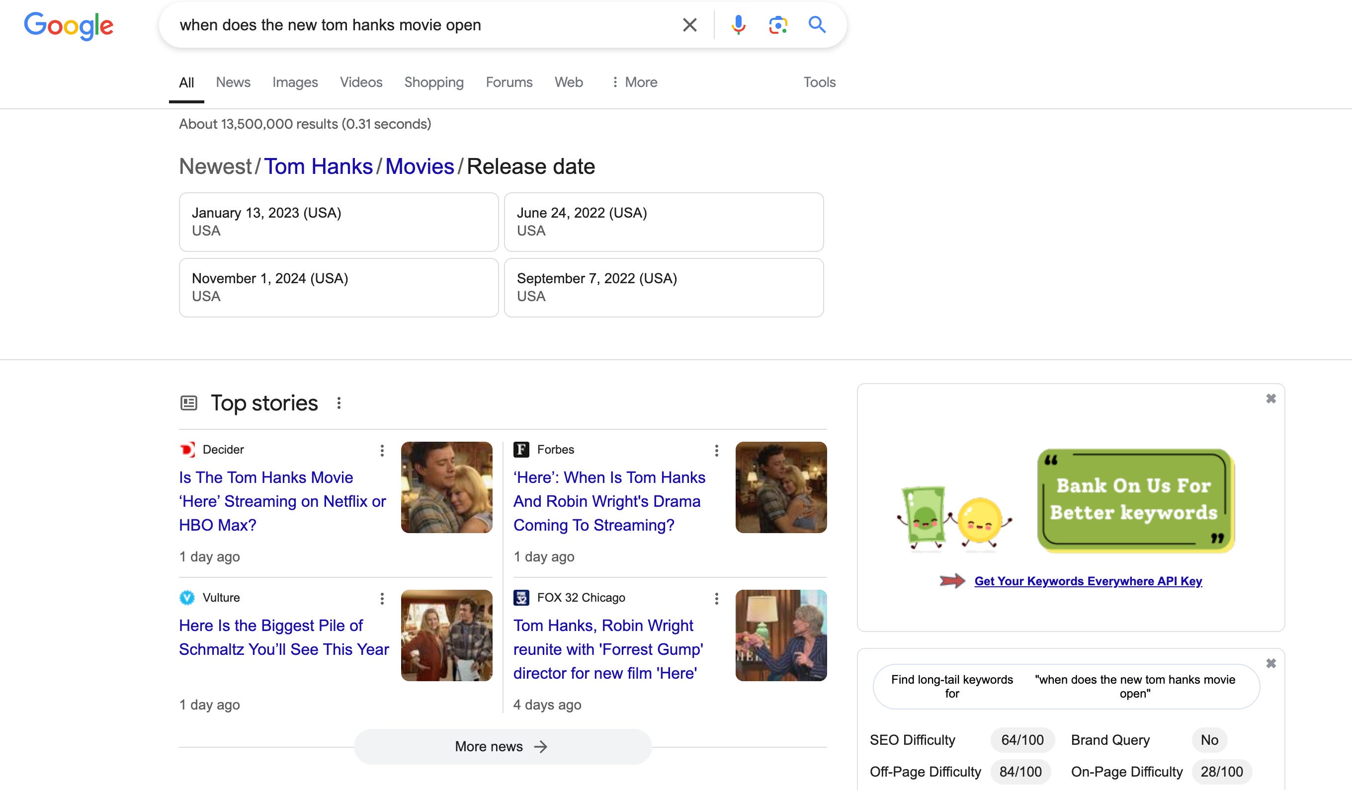 When is that new Tom Hanks movie opening? (It already did, ChatGPT told me. Google didn’t seem to know.)