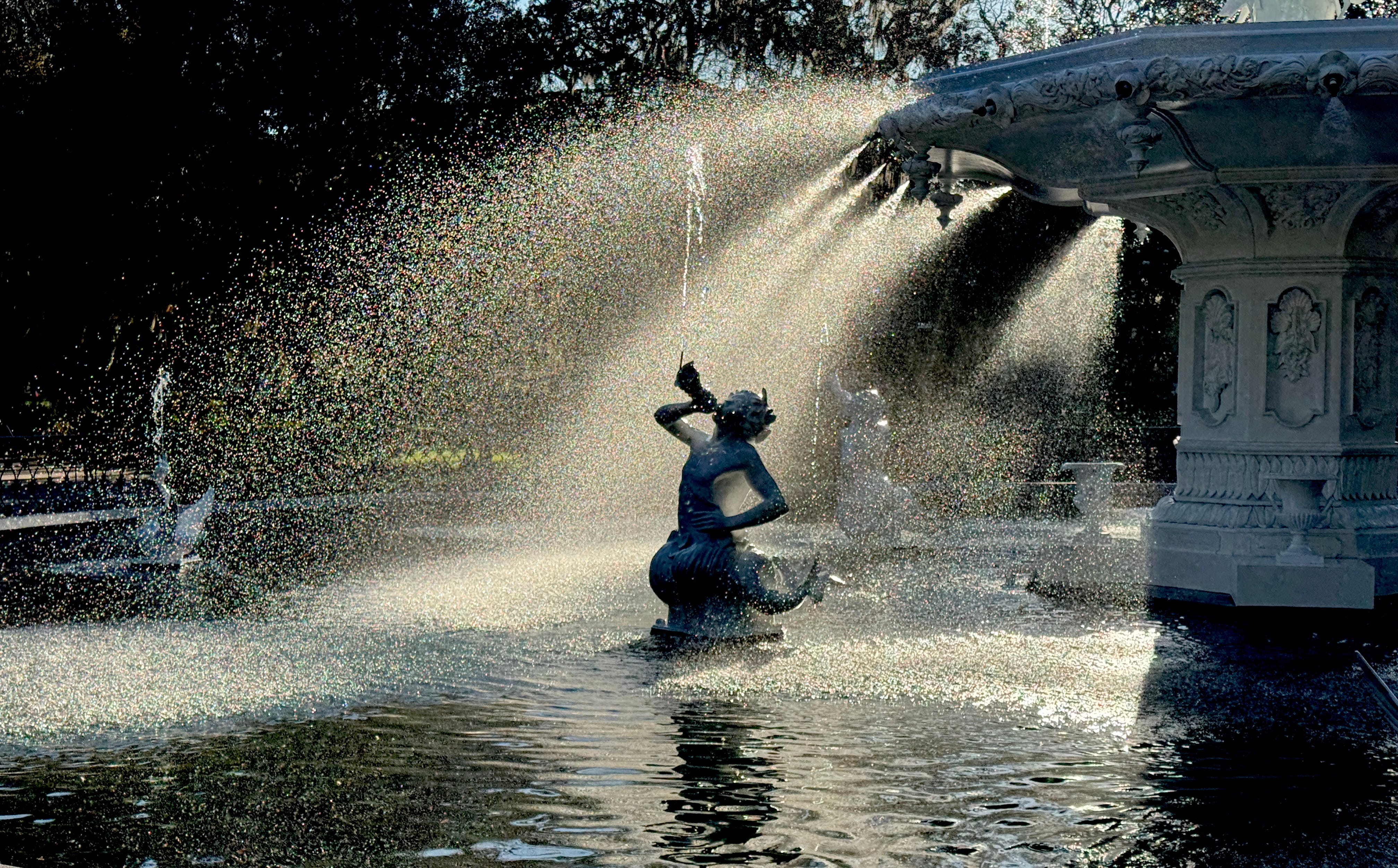 Tip: shoot a fountain statue into the sun as it’s falling down, about 15 minutes before sunset, and you can get dramatic, moody Hollywood level backlighting and frozen water action. Kudos to Ruth for discovering this on her iPhone 15 Pro Max.