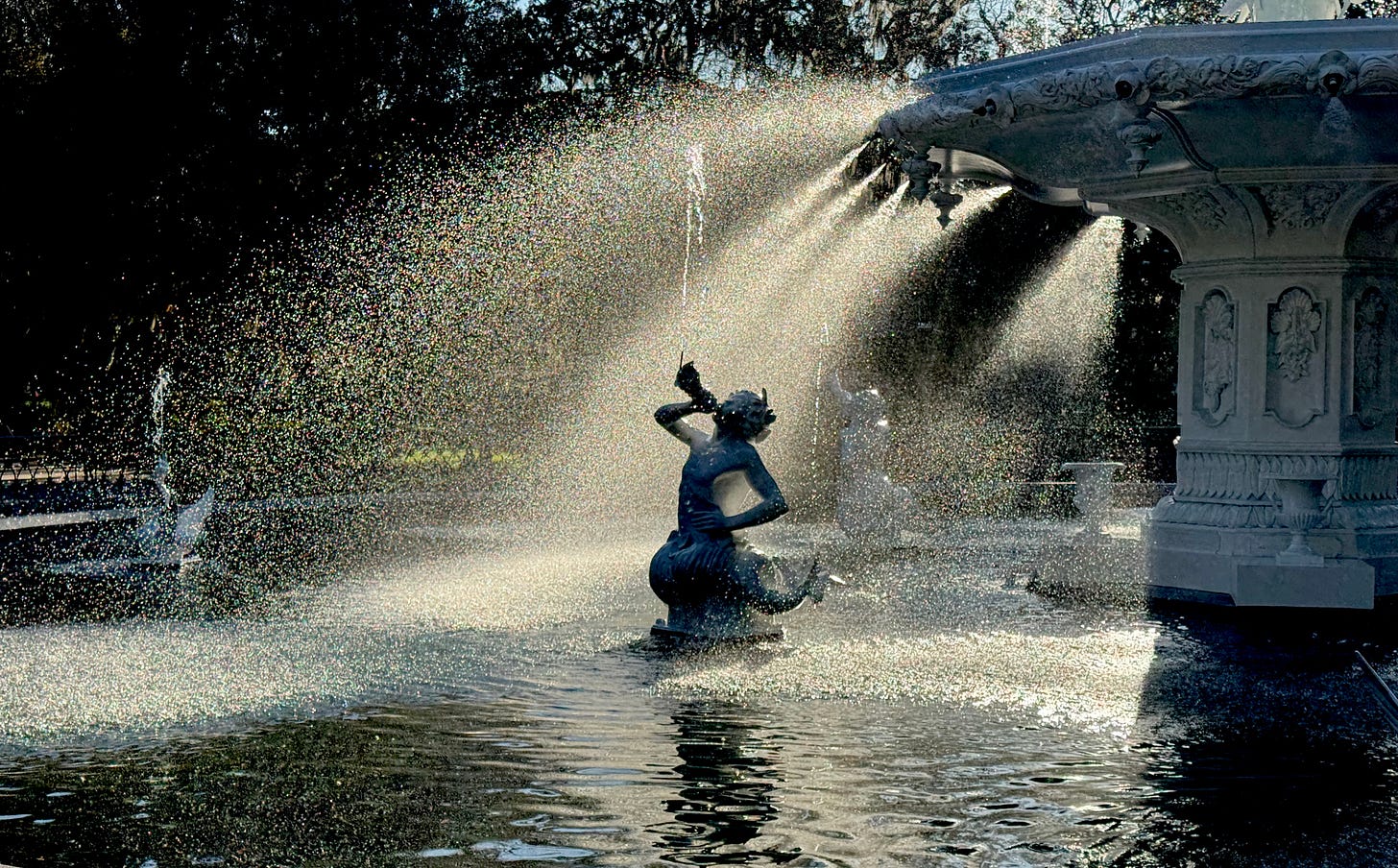 Thanks for the plug and for sharing the photo I took of Savannah’s famous fountain at Forsyth Park. It felt like a lucky shot. Mostly I’ve learned (from you!) to shoot pictures with the sun behind me, but when you can shoot toward it as the sun is heading down and is partly shielded by a metal fountain, then it works!