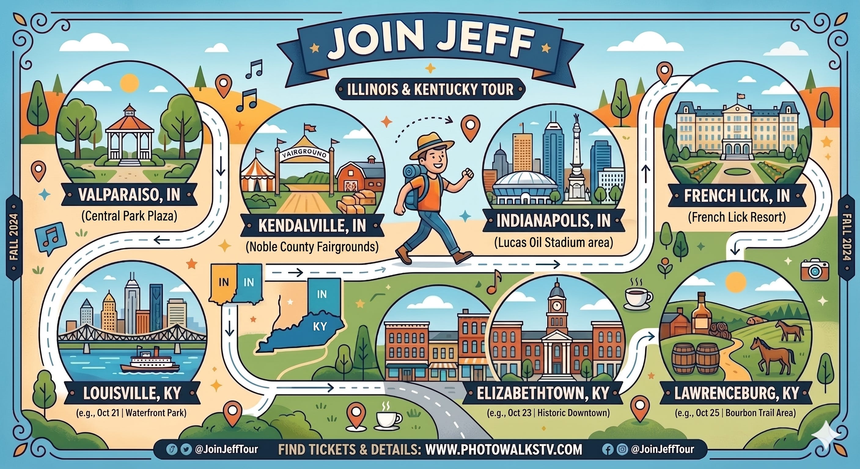 Jeff makes producing PhotoWalks seem too easy, yet a lot of prep, shooting hours and post go into the finished product you see on TV or YouTube. Taking photos is, ultimately, with a few tips the easiest part.”