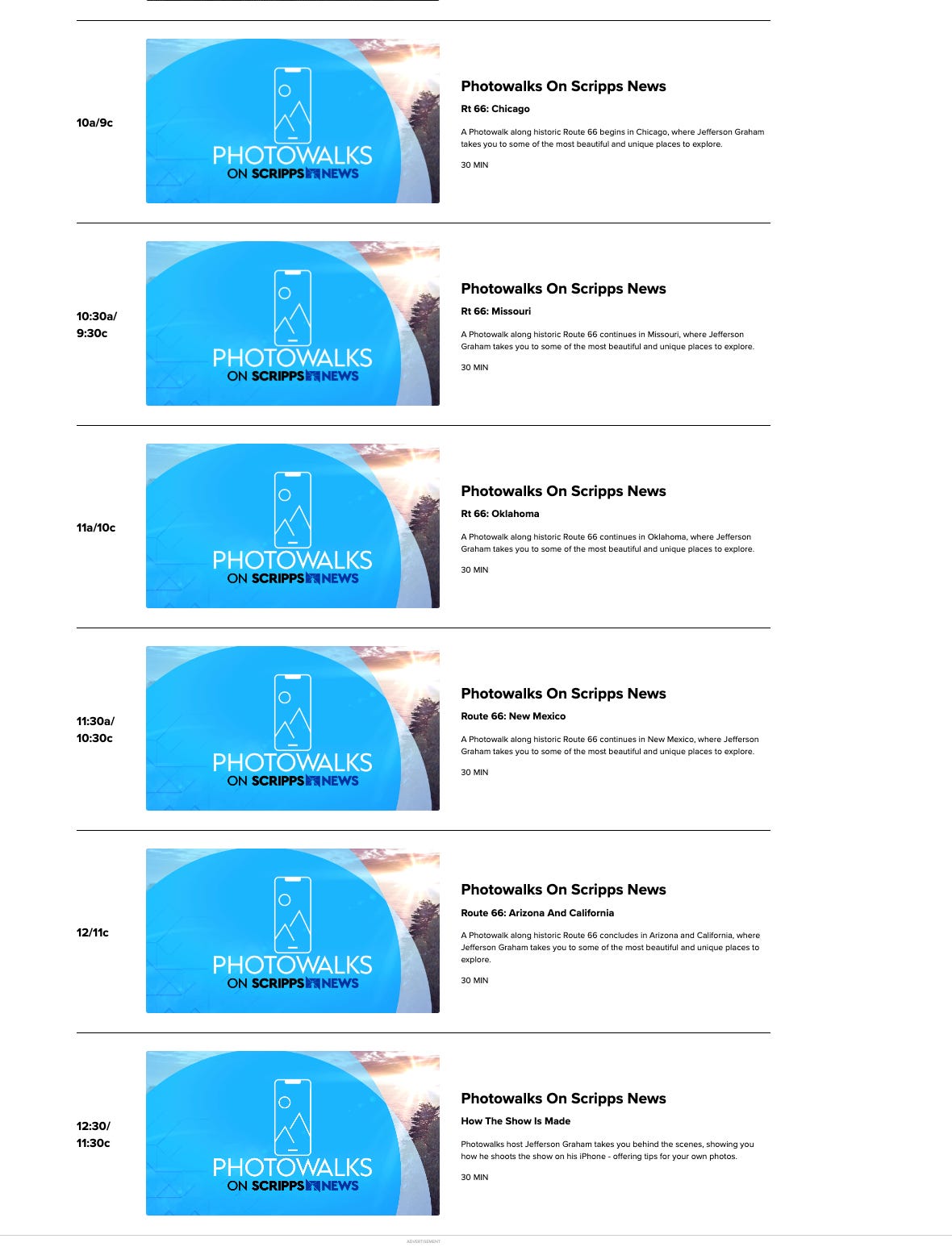 Speaking of Route 66, our annual Photowalks marathon kicks off Thursday for the holiday on Scripps News, starting at 10 a.m. ET with the complete six-part Route 66 series, from Chicago to Santa Monica. Who needs a parade when you can join me on the Mother Road?
