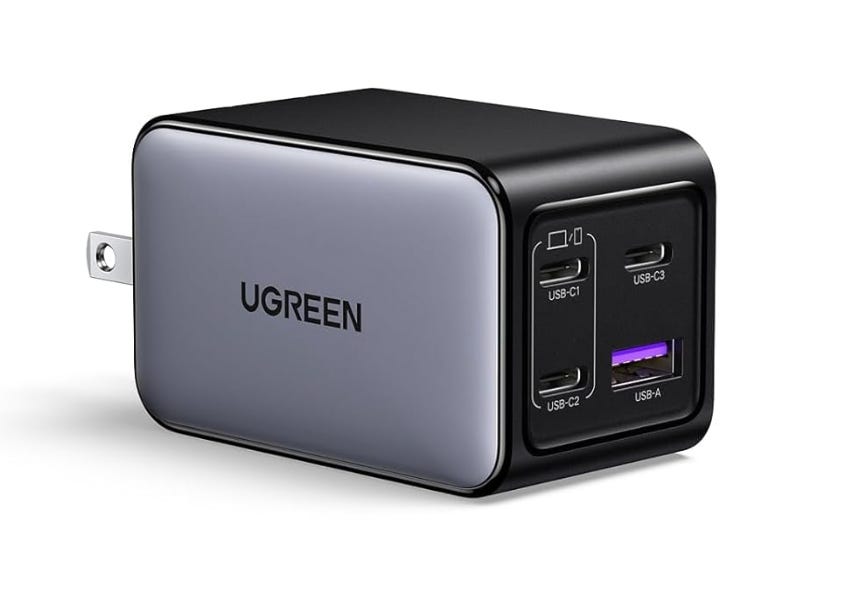 I take: two fast 65W chargers that can charge up to five devices (with accompanying fast charging cables) at once. Period. They can power up my multiple iPhones, wireless microphones from Rode, Insta360, DJI Mini 4 Pro drone and/or MacBook Pro 16 inch laptop. Plus a teeny memory card reader, an analog Peak Design Travel Tripod that doesn’t need charging, and multiple selfie sticks.