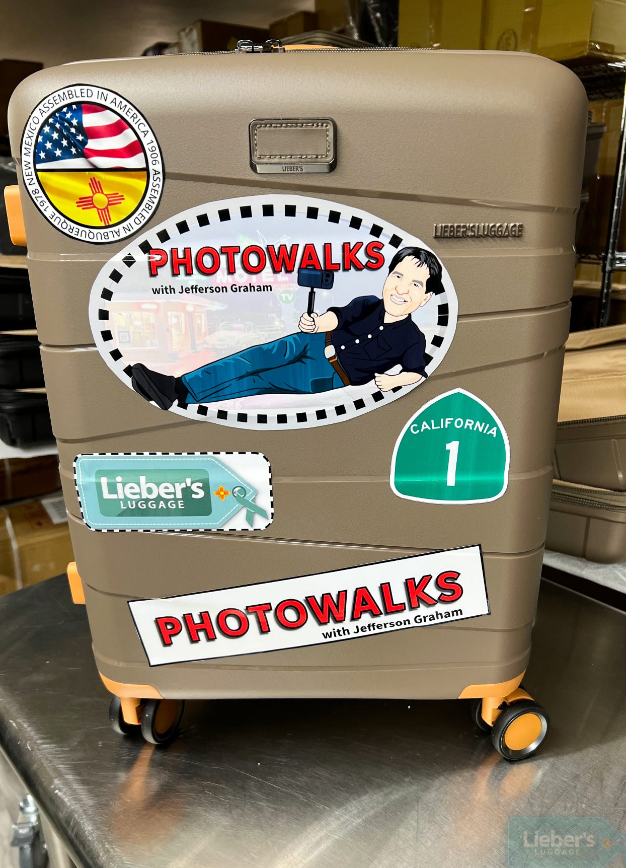 Angela Marquez, who co-owns a sawmill and makes custom wood products (like cutting boards and serving trays) with her husband (JandARusticProducts) in tiny Ruidoso, NM (pop. 95) is the winner of our giveaway with Lieber’s Luggage for the official Photowalks edition of its carry-on suitcase.