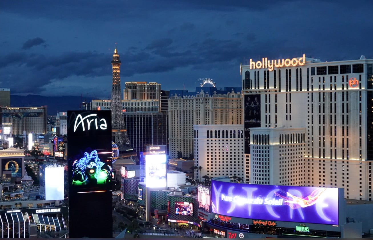The Las Vegas skyline is one of the most dynamic and exciting in the world, with rows and rows of crazy lit signs begging us to come visit mega-casinos.