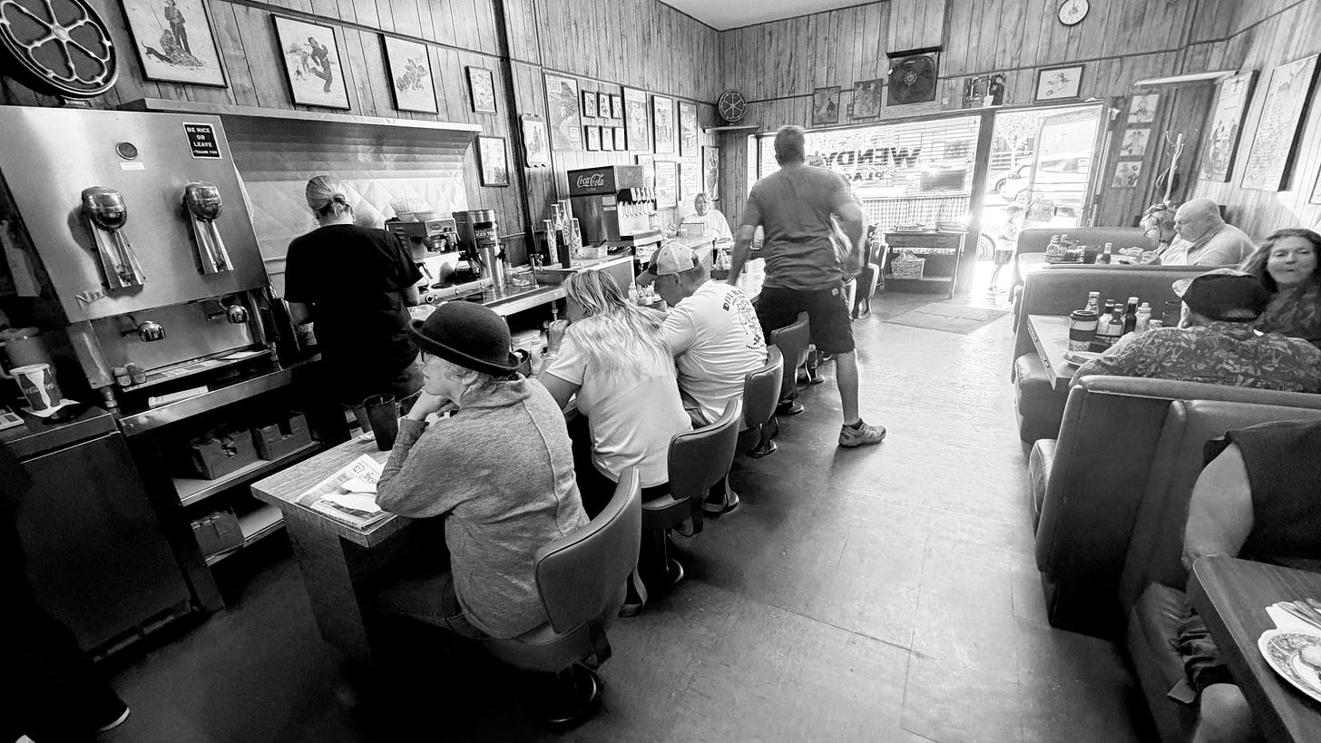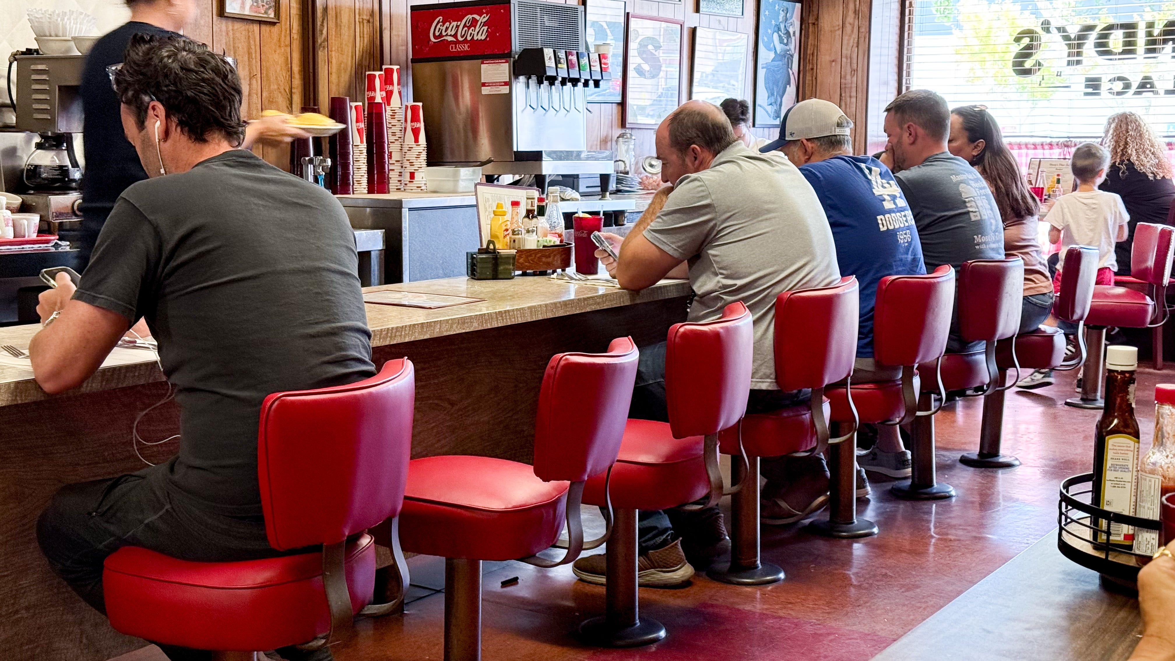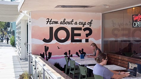 El Segundo, like many small towns all across the country, has a cute Main Street with cafes, murals, restaurants, police and fire stations, many things that are often missed. It’s everytown, USA, complete with lots of American flags waving and a great little diner just off Main Street called Wendy’s Cafe. (And you all know what I ordered there.)