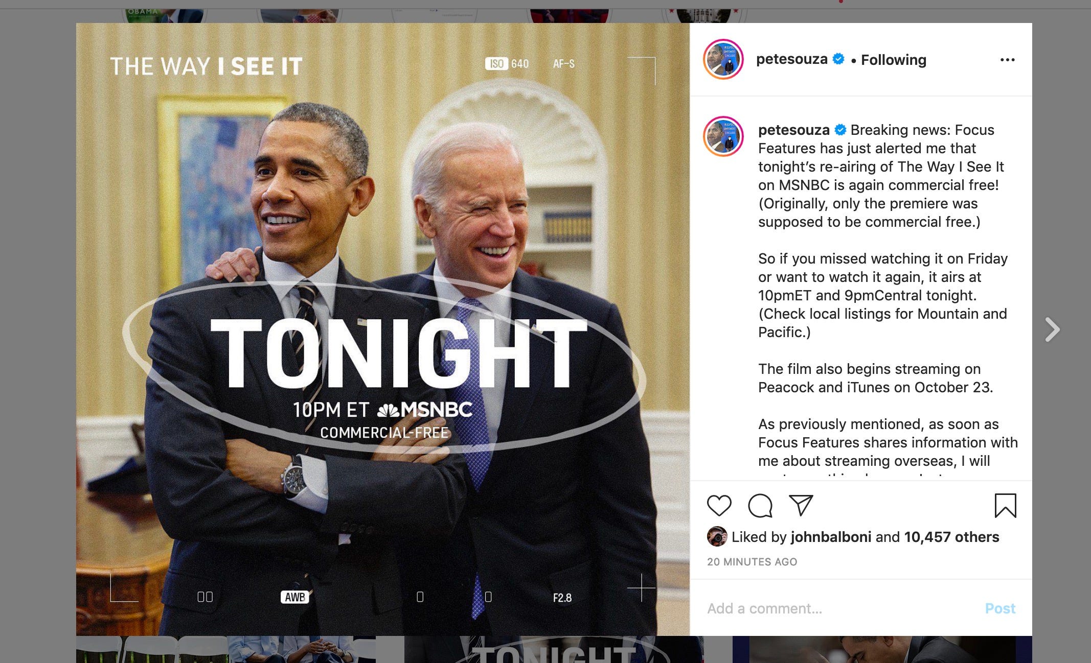 ”The Way I See It,” about the photographer Pete Souza that has two more scheduled airings. Regardless of your political persuasion, this is must-see TV, at least for anyone interested in photography.