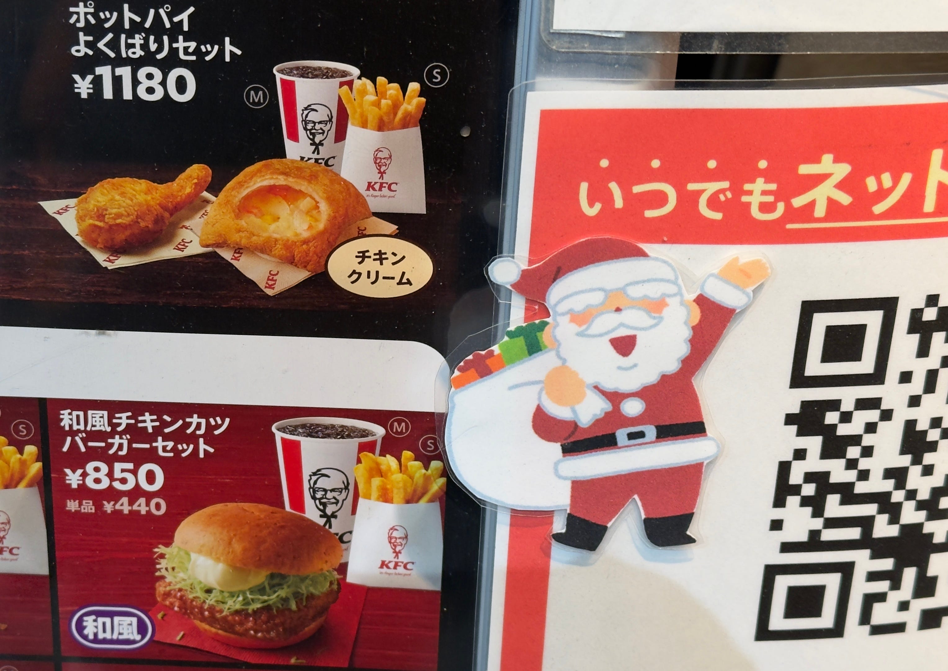 In Japan, Christmas is about the big holiday meal—fried chicken, and most turn to Kentucky Fried Chicken and bring home a bucket. At least that’s what they tell me here.